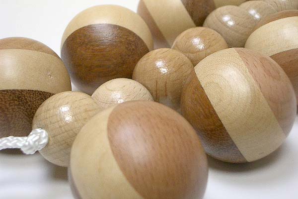 とスムーズに動く。1つの玉の木肌が3色(材質)に分れていて色の変化が大変楽しい。お子さん自身が歩き始めたら引っぱて遊ぶのは勿論、ハイハイの時期は大人が目の前で引っぱってあげれば、ヨチヨチとついてきますので比較的早い時期から十分に遊べる。